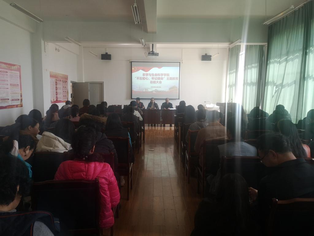 2020年1月16日下午,农学与生命科学学院在农学楼1507召开“不忘初心、牢记使命”主题教育总结大会,学校党委第三指导组李杉同志莅临监督指导,学院全体班子成员、党员、教师等同志参加会议,学院党委副书记、院长王定康同志主持会议。