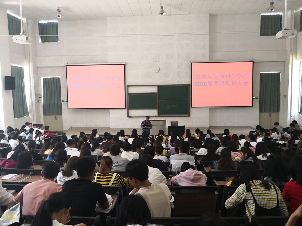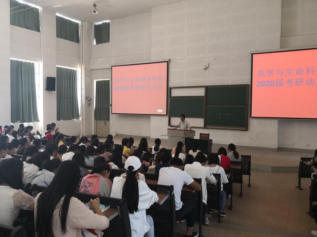2019年5月20日,农学与生命科学学院在博雅楼3101举行2020届考研动员大会。参加动员会的领导有农学与生命科学学院党总支书记翟书华和院长王定康,2016级全体本科学生参加了此次动员大会,大会由吴晓妮主持。