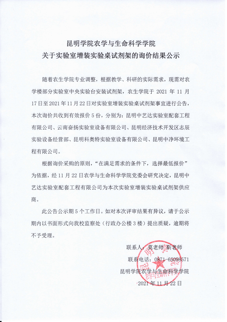 beat365中国官方网站关于实验室增装实验桌试剂架的询价结果公示